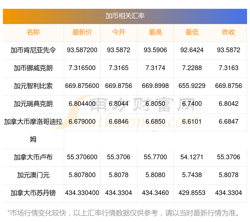 南方財富網(wǎng)為您提供加幣對利幣匯率最新價格詳情。