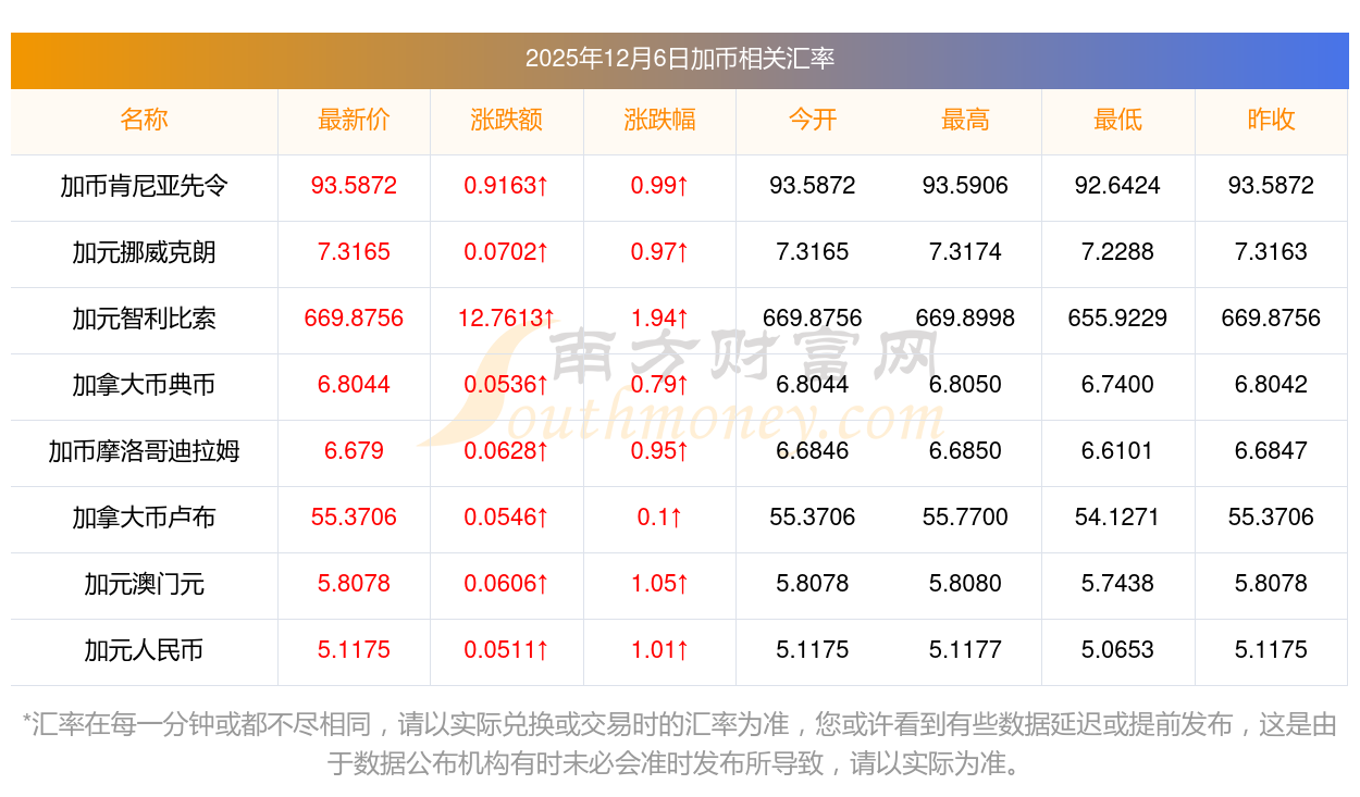 2025年12月6日加幣相關(guān)匯率查詢