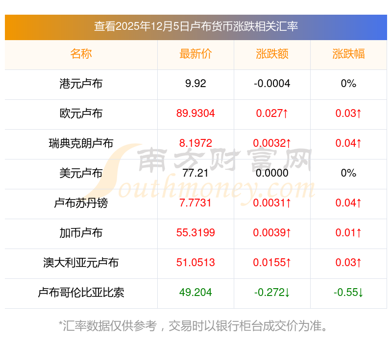 2025年12月5日盧布相關(guān)匯率查詢