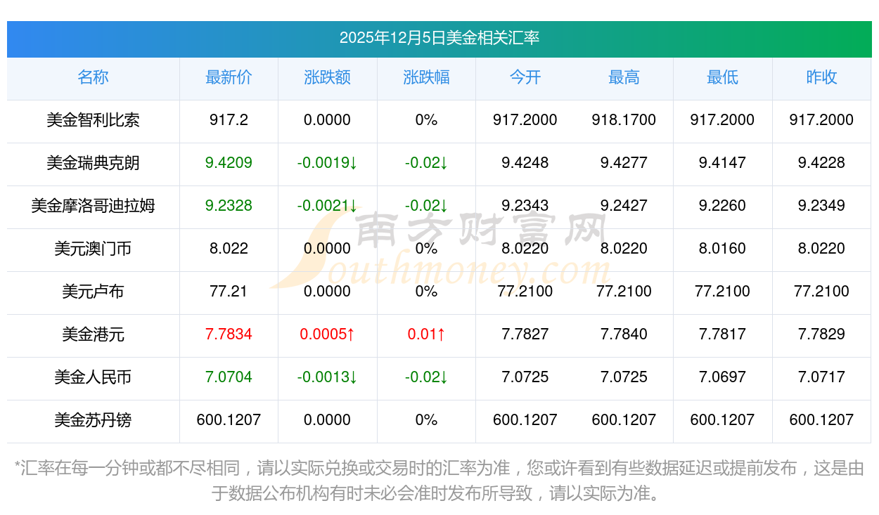 2025年12月5日美金相關(guān)匯率查詢(xún)