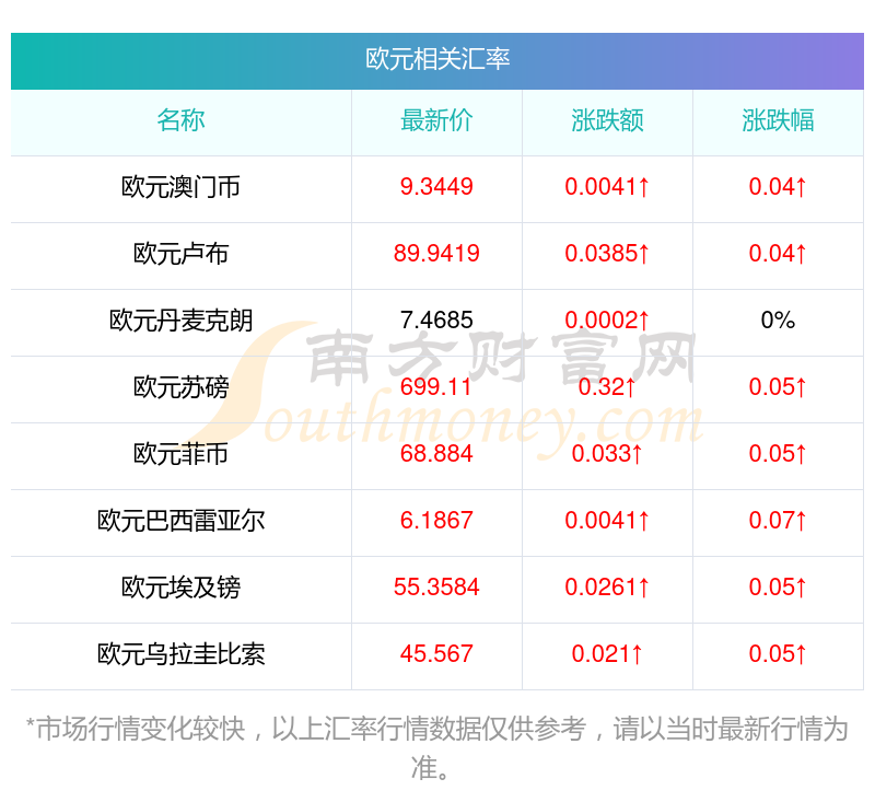 2025年12月5日歐元相關(guān)匯率查詢