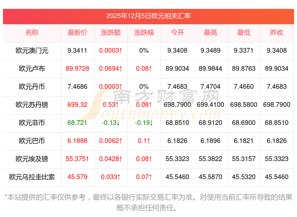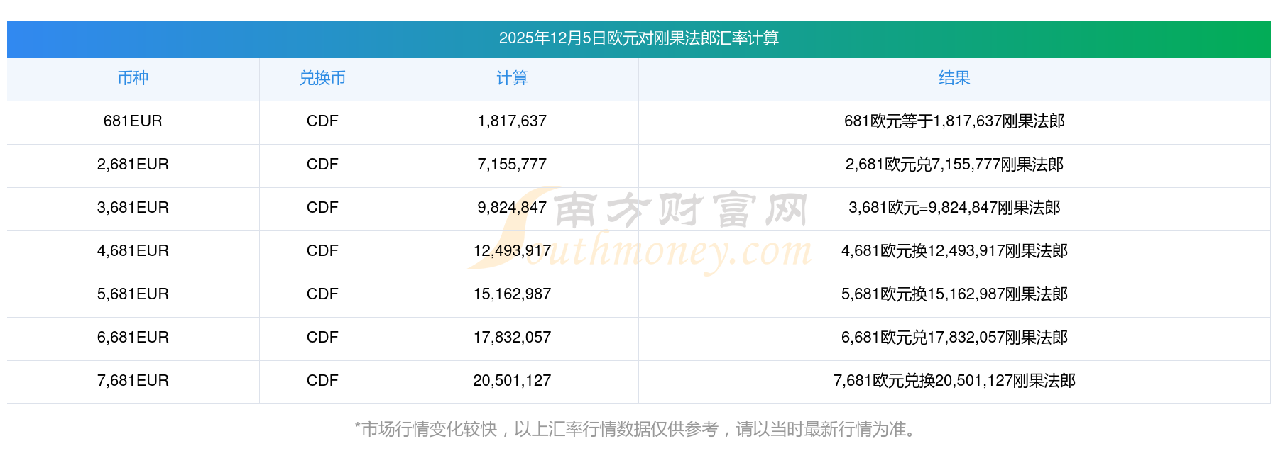 今日124歐元兌換剛果法郎的價(jià)格調(diào)整是多少12月5日