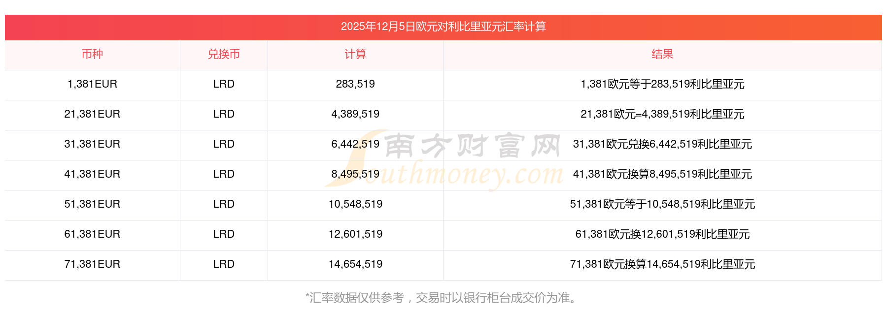 匯率換算查詢今天歐元兌利比里亞元是多少2025-12-5