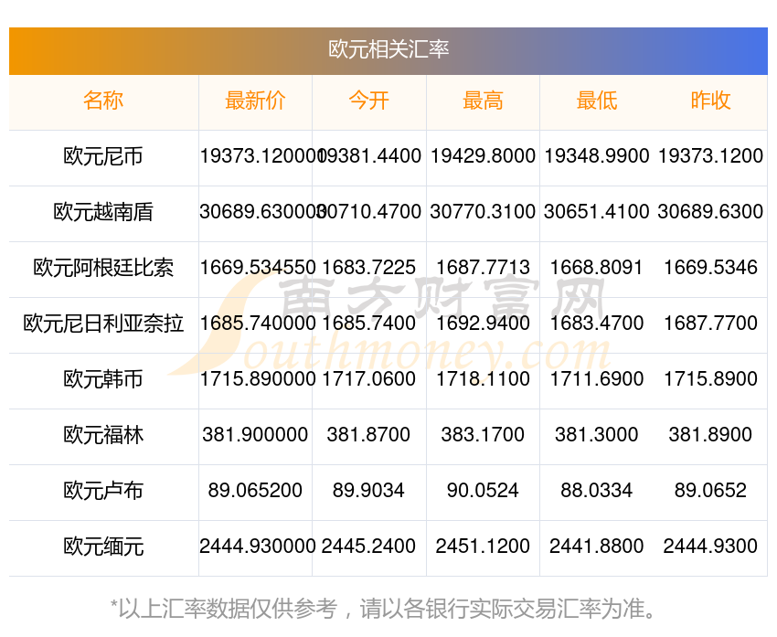 2025年12月6日歐元相關(guān)匯率查詢