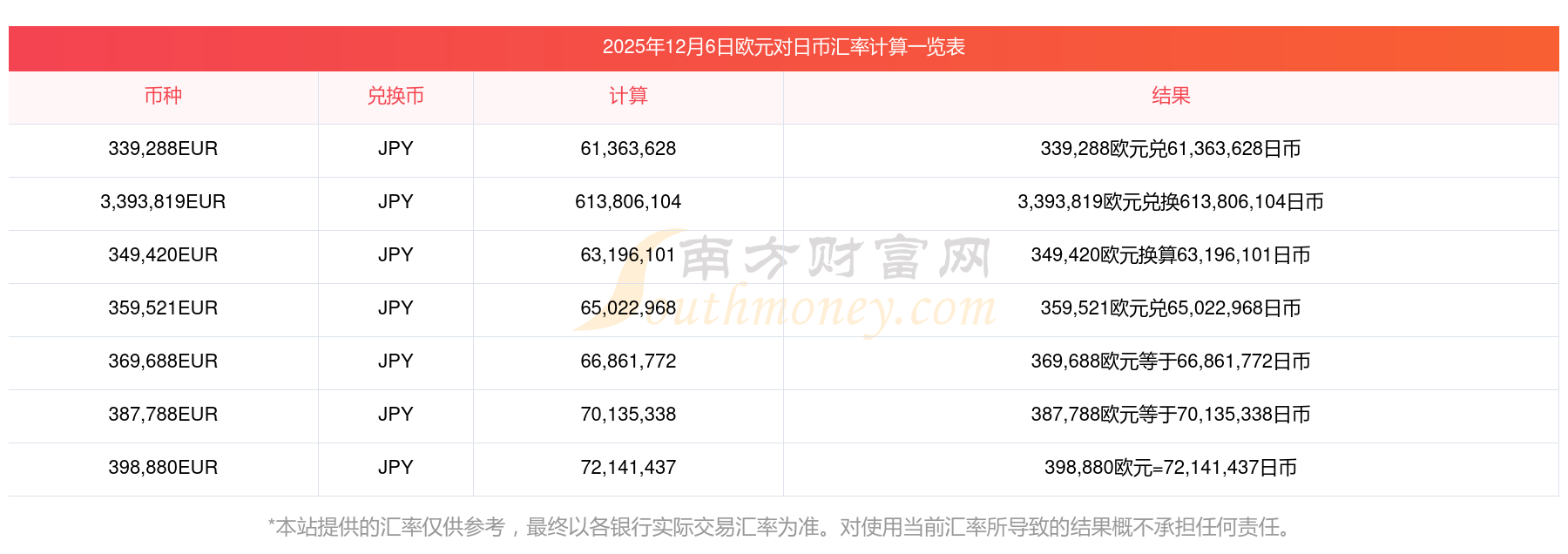 歐元對(duì)日幣匯率價(jià)高嗎 123歐元對(duì)日幣匯率2025/12/06
