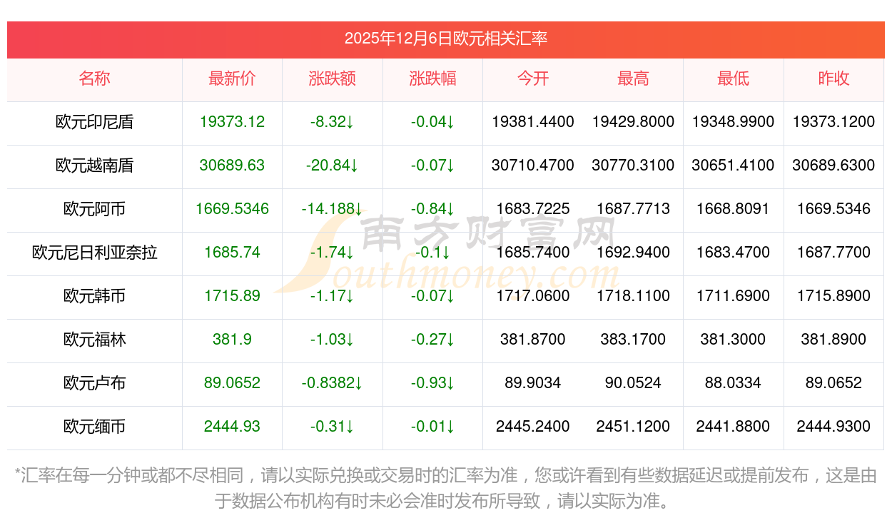 根據(jù)2025年12月6日匯率,歐元兌換澳門幣匯率最新9.342000,今開9.3420,昨收9.3420,最高9.3586,最低9.3303。