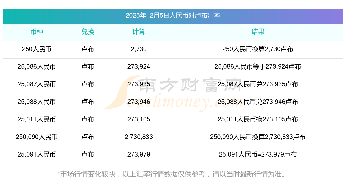 今日匯價查詢:2025年12月5日41人民幣兌盧布匯價一覽