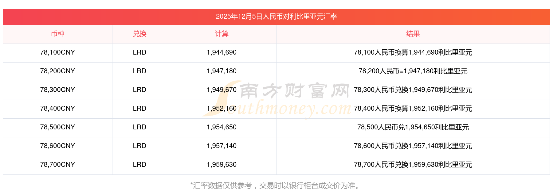 今8人民幣兌換利比里亞元的匯率是多少 外匯如何查詢2025/12/5