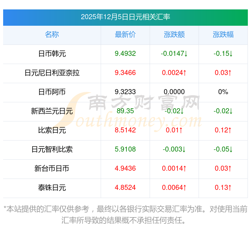 2025年12月5日日元相關(guān)匯率查詢(xún)