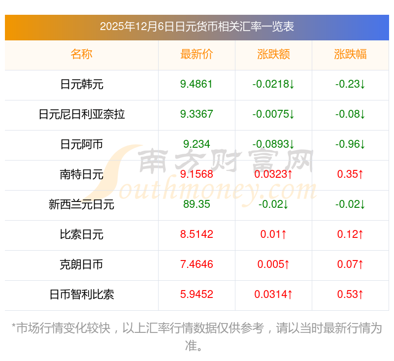 2025年12月6日日元相關(guān)匯率查詢