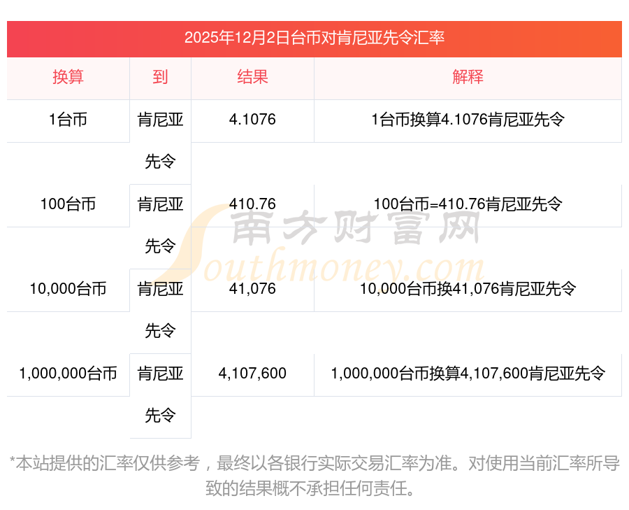 臺幣外匯查詢 最新今天2025/12/02臺幣兌換肯尼亞先令匯率計算