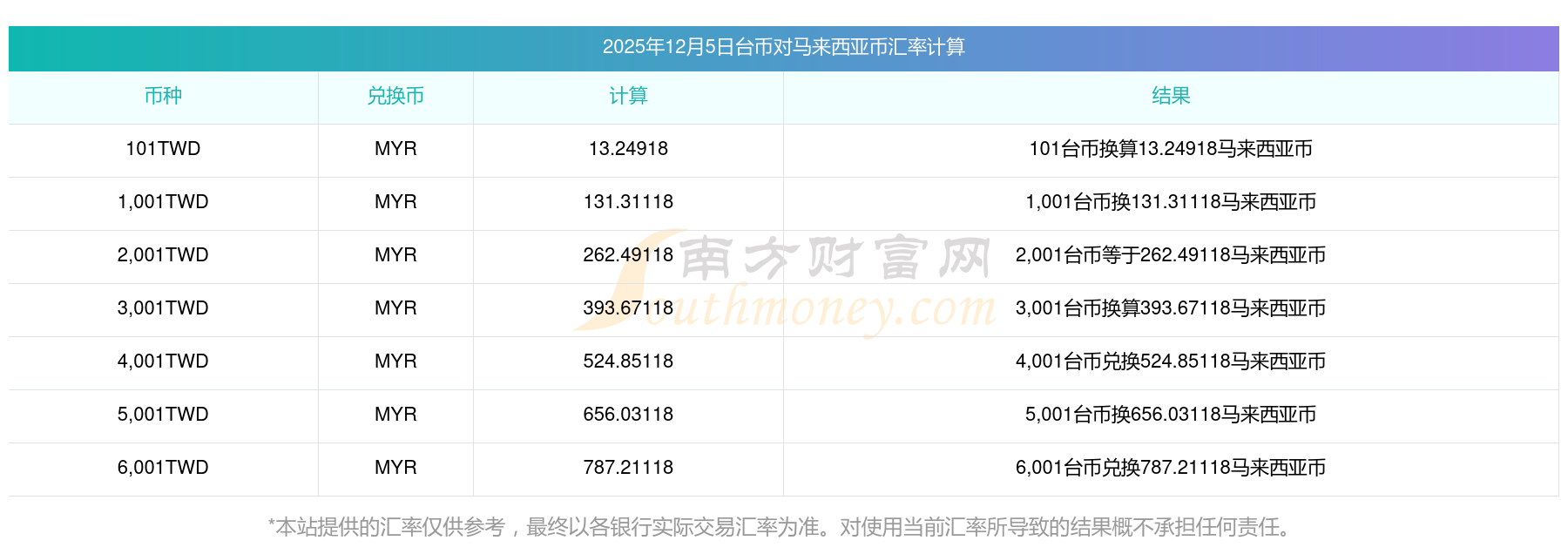 2025年12月5日臺幣與馬來西亞幣的兌換匯率計算如下: