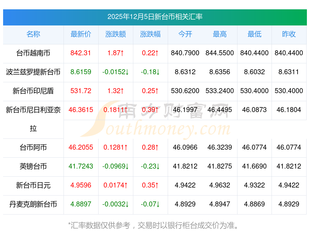 2025年12月5日新臺幣相關(guān)匯率查詢