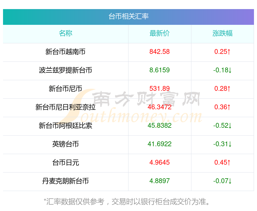 南方財富網(wǎng)為您提供臺幣對日元匯率最新價格詳情。