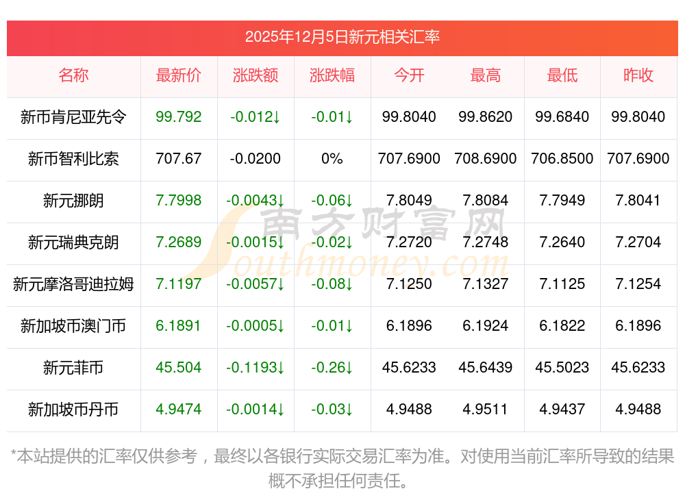 2025年12月5日新元相關(guān)匯率查詢