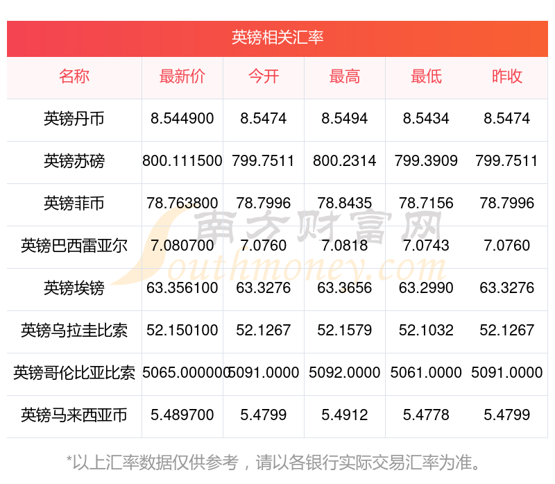 南方財(cái)富網(wǎng)為您提供英鎊對馬來西亞幣匯率最新價(jià)格詳情。