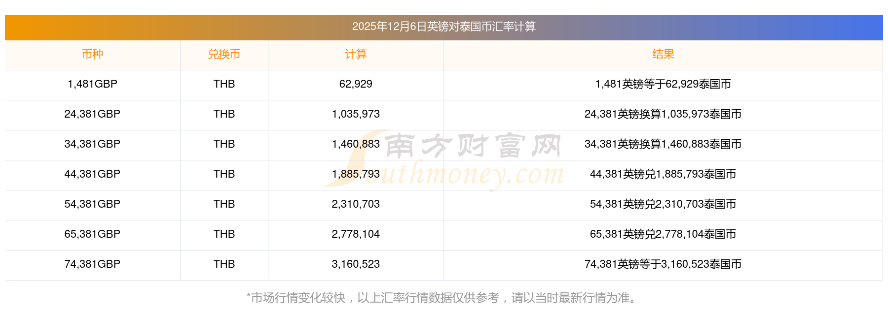 今日匯率價(jià):英鎊兌換泰國幣匯率多少(2025年12月6日)