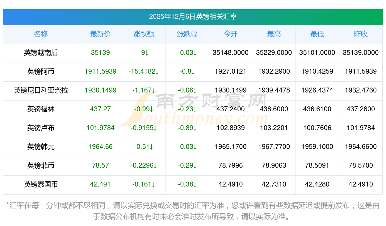 2025年12月6日英鎊相關(guān)匯率查詢