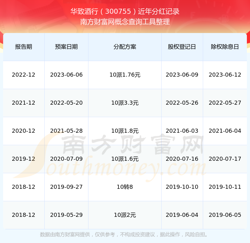 華致酒行最新一次公布的分紅方案:10派1.76元。