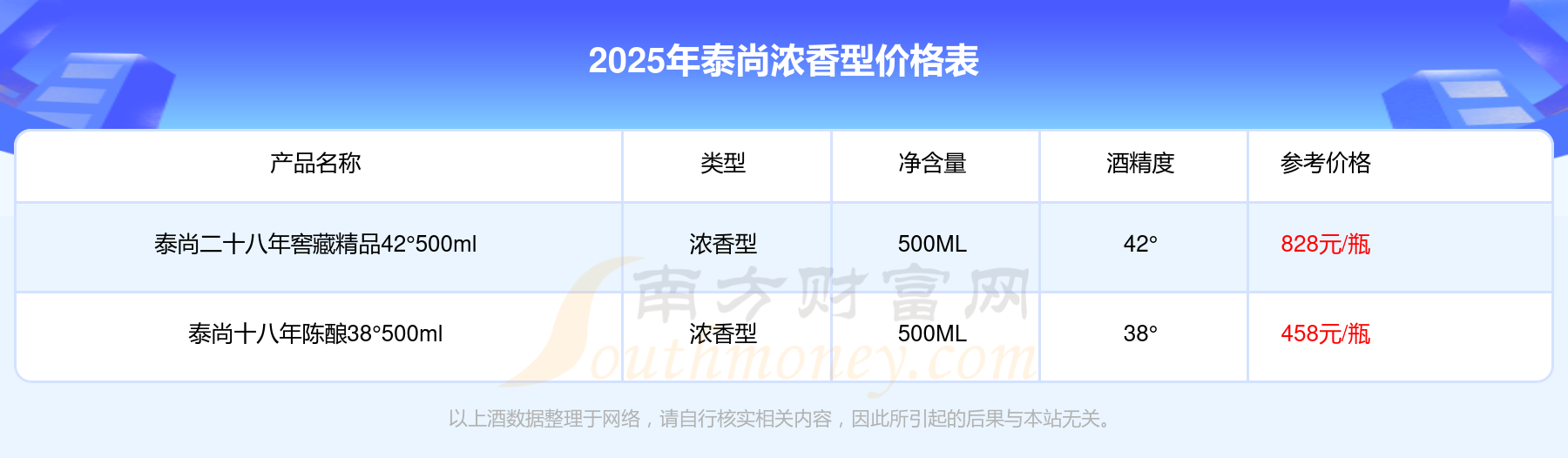 2025泰尚濃香型酒最新價格:泰尚二十八年窖藏精品42°500ml參考價828元/瓶、泰尚十八年陳釀38°500ml參考價458元/瓶。