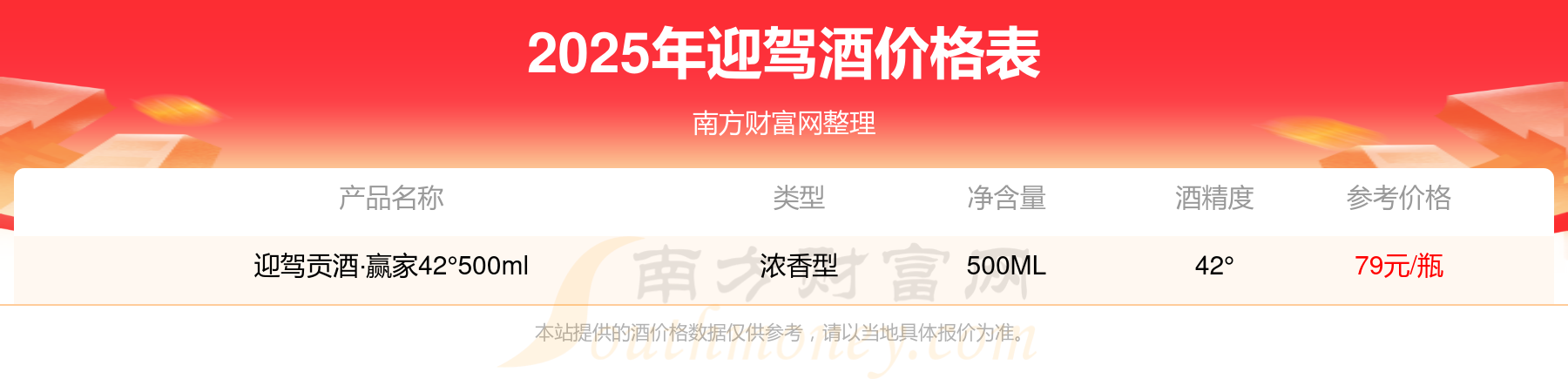本站提供的酒價格數(shù)據(jù)僅供參考,請以當?shù)鼐唧w報價為準。