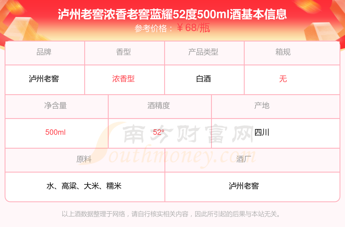 瀘州老窖濃香老窖藍(lán)耀52度500ml基本信息