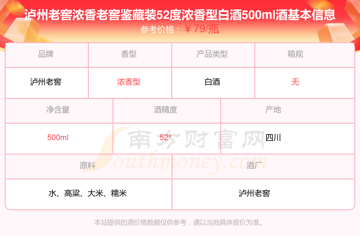 瀘州老窖濃香老窖鑒藏裝52度濃香型白酒500ml基本信息
