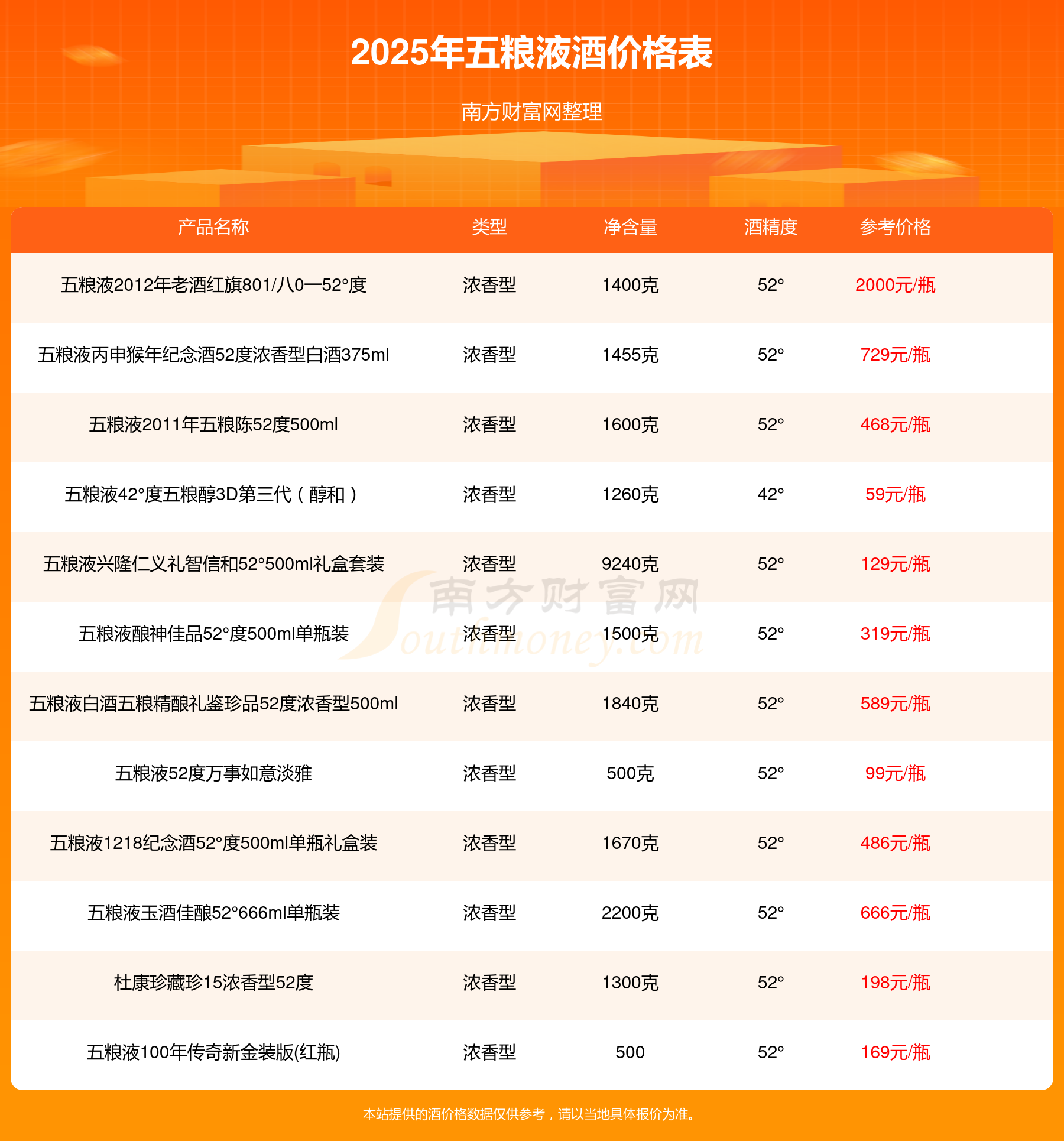 當(dāng)前五糧液酒價格最高的酒為五糧液百年世博世紀(jì)榮耀紀(jì)念酒60°999ml,參考價26980元/瓶,而五糧液酒價格最低的是五糧液干一杯小瓶46度,參考價16元/瓶,價格高低差為26964元/瓶。