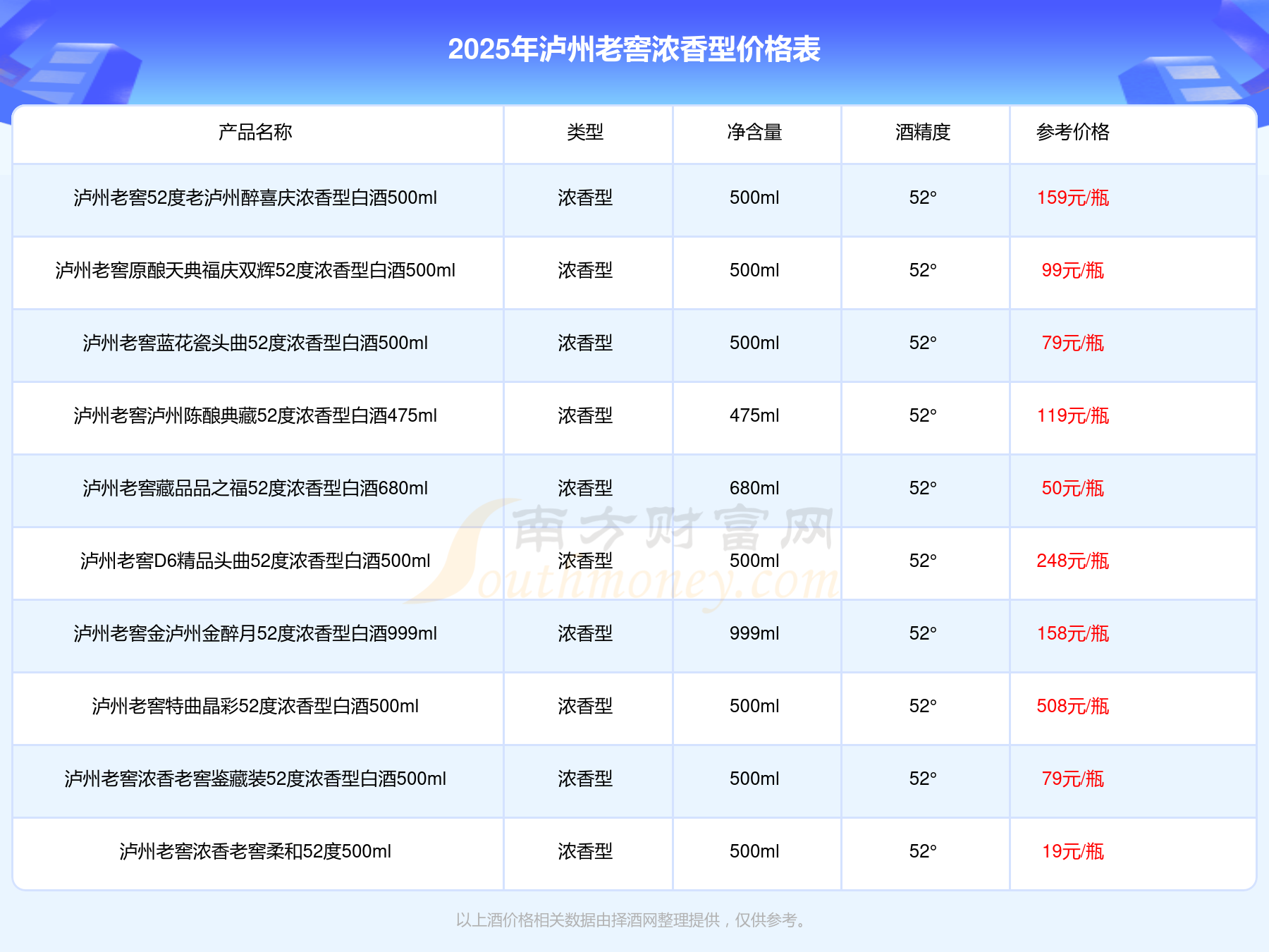 2025瀘州老窖濃香型酒最新價(jià)格:瀘州老窖國(guó)窖1573春釀鼠兆豐年E 55度參考價(jià)17999元/瓶、瀘州老窖國(guó)窖1573生命中的那壇酒55度014參考價(jià)9999元/瓶、瀘州老窖國(guó)窖1573春釀鼠兆豐年A 55度參考價(jià)5088元/瓶。