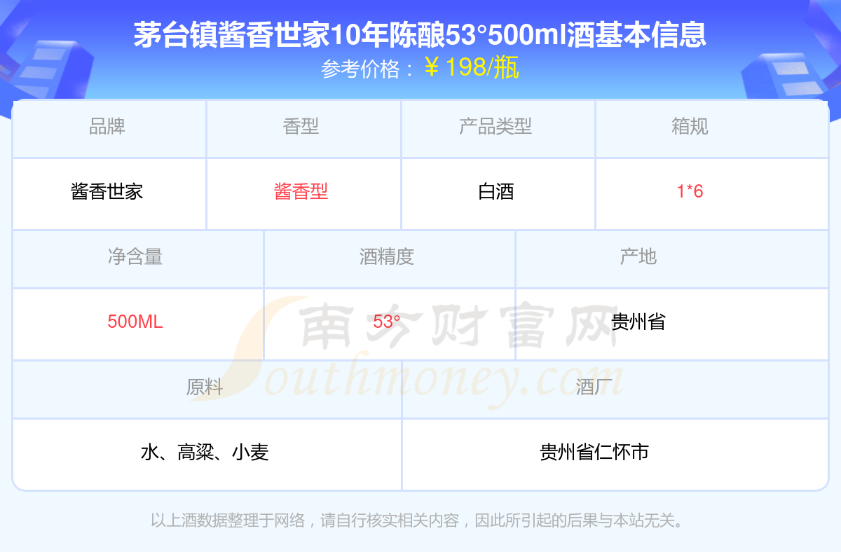 茅臺(tái)鎮(zhèn)醬香世家10年陳釀53°500ml基本信息