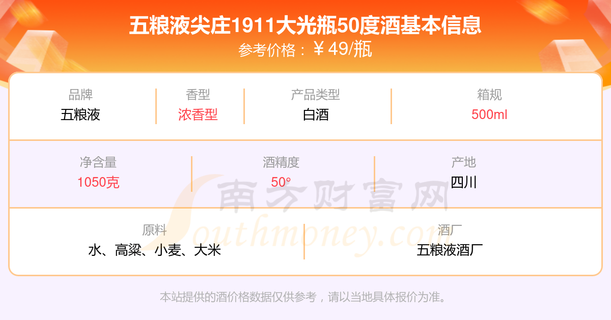 五糧液尖莊1911大光瓶50度酒基本信息