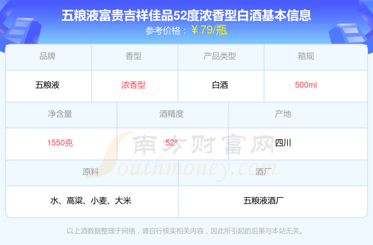 五糧液富貴吉祥佳品52度濃香型白酒基本信息