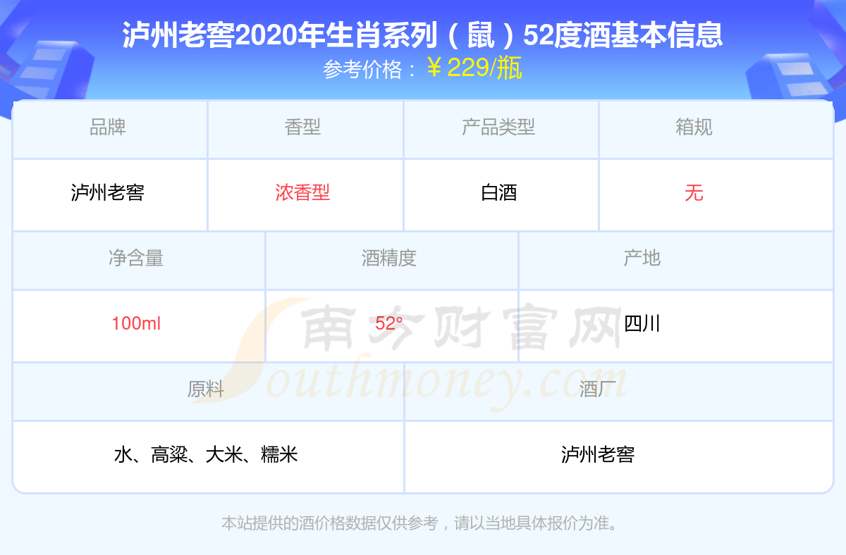 瀘州老窖2020年生肖系列(鼠)52度基本信息