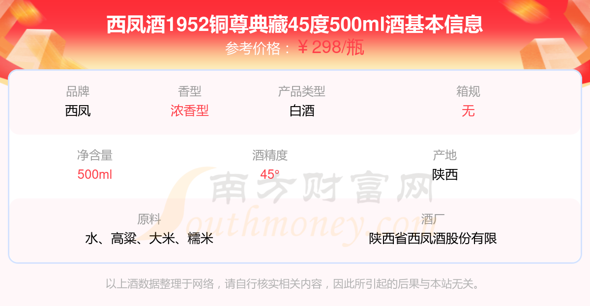 西鳳酒1952銅尊典藏45度500ml基本信息