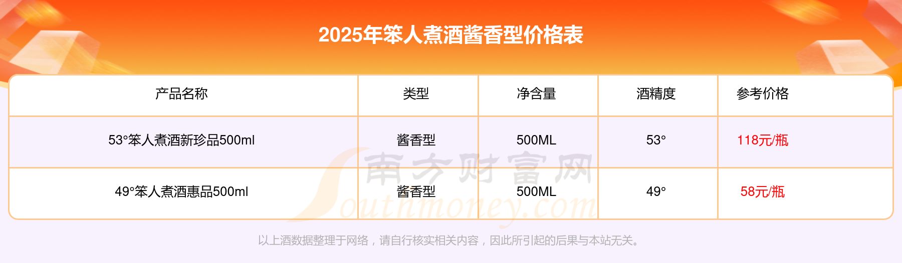 2025笨人煮酒醬香型酒最新價(jià)格:53°笨人煮酒新珍品500ml參考價(jià)118元/瓶、49°笨人煮酒惠品500ml參考價(jià)58元/瓶。