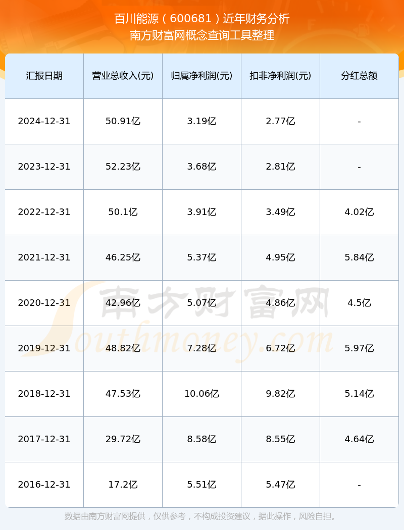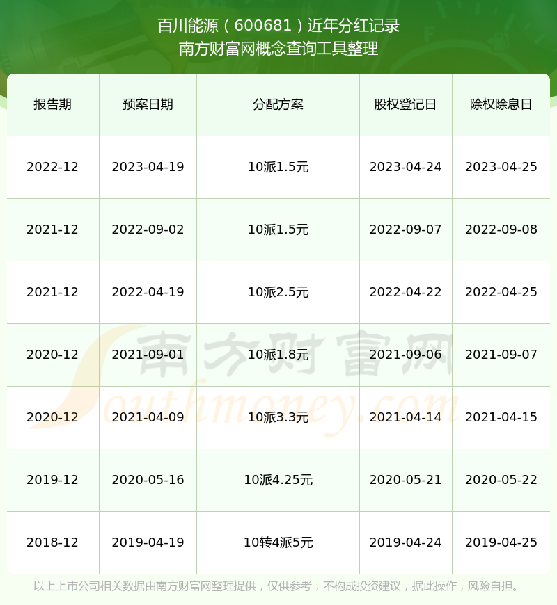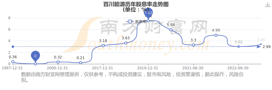 百川能源最新一次公布的分紅方案:10派1.5元。