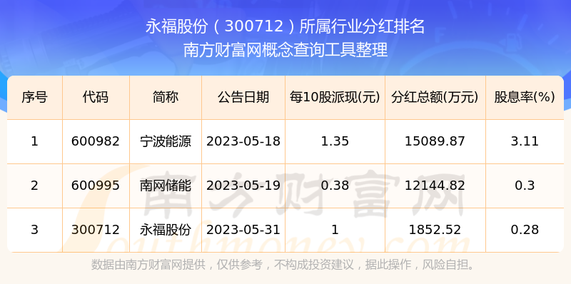 二、永福股份300712行業(yè)分紅排名