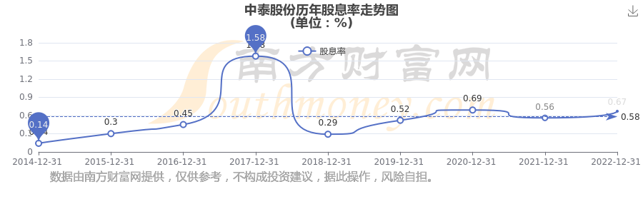 近年中泰股份年度股息率走勢如下圖: