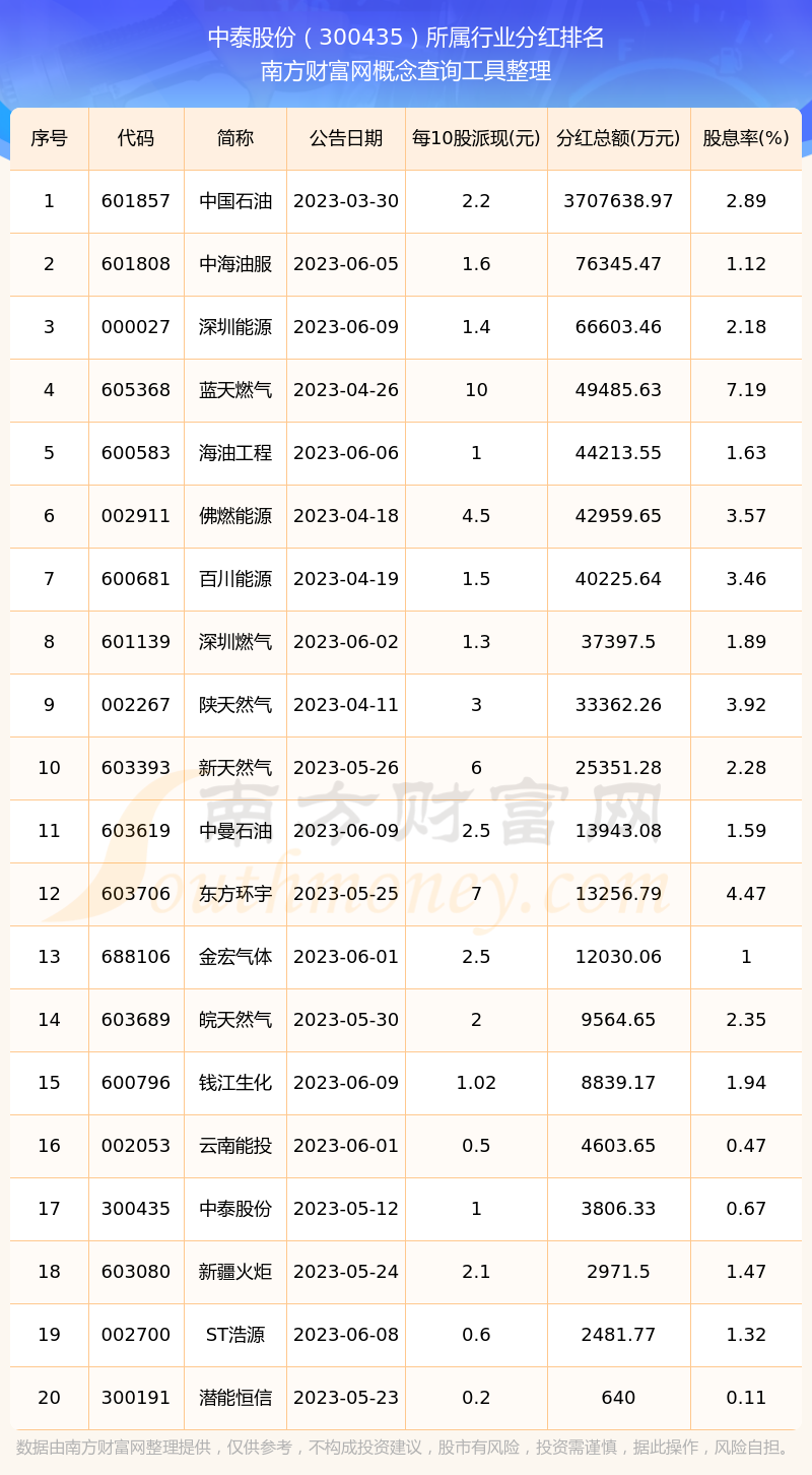 二、中泰股份300435行業(yè)分紅排名