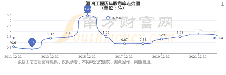 近年海油工程年度股息率走勢如下圖: