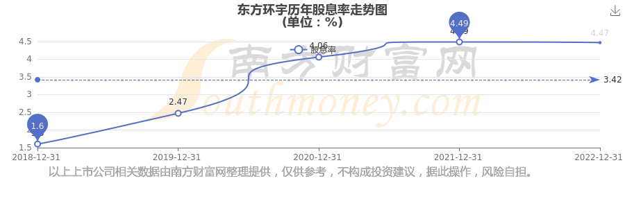 近年?yáng)|方環(huán)宇年度股息率走勢(shì)如下圖: