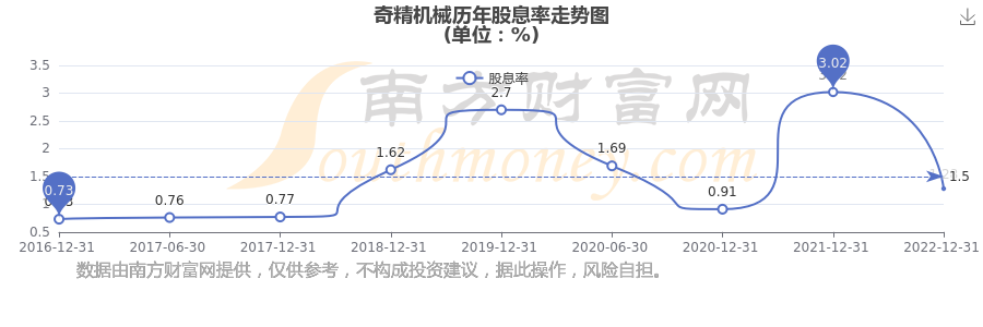 奇精機械最新一次公布的分紅方案:10派1.5元。