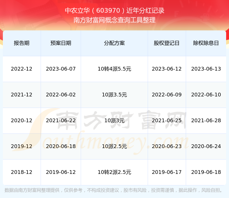 近年中農(nóng)立華分紅派息情況如下表所示: