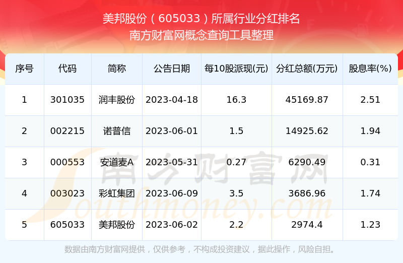 按照南方財富網(wǎng)趨勢選股系統(tǒng)統(tǒng)計,美邦股份所屬行業(yè)為殺菌劑行業(yè),殺菌劑行業(yè)分紅排名情況如下表: