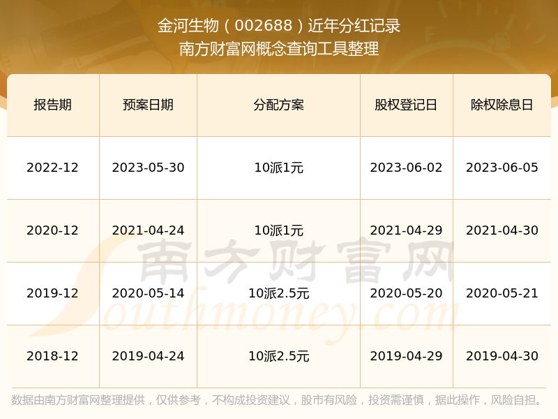 一、金河生物(002688)股票分紅記錄