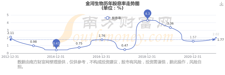 近年金河生物年度股息率走勢(shì)如下圖: