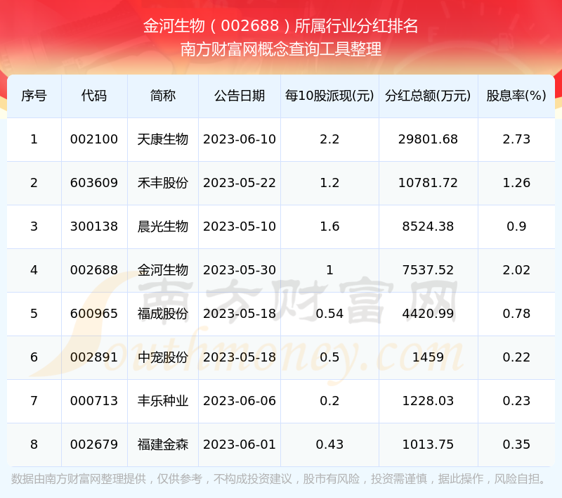 二、金河生物002688行業(yè)分紅排名