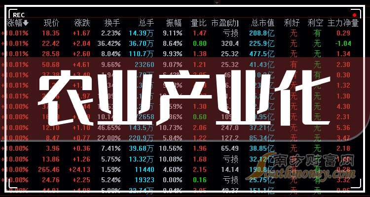 農(nóng)業(yè)產(chǎn)業(yè)化上市公司龍頭有哪些?據(jù)南方財富網(wǎng)概念查詢工具數(shù)據(jù)顯示,農(nóng)業(yè)產(chǎn)業(yè)化上市公司龍頭有: