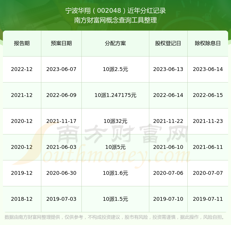 寧波華翔最新一次公布的分紅方案為10派2.5元。本次權(quán)益分派股權(quán)登記日為2023年6月13日,除權(quán)除息日為2023年6月14日,派息日為2023年6月14日。