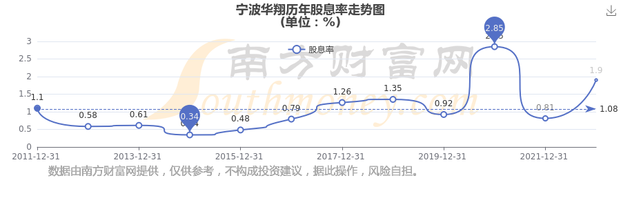 近年寧波華翔年度股息率走勢(shì)如下圖: